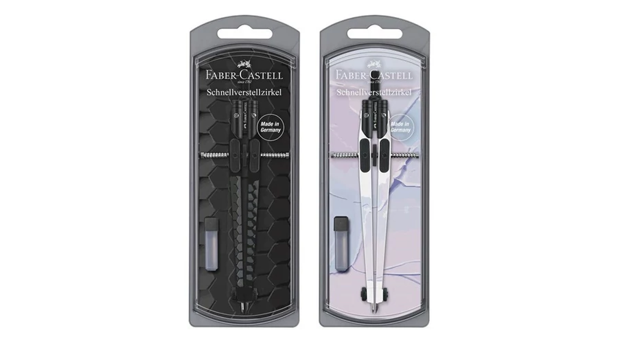 Körző készlet gyorsállítóval. Ideális általános iskolába, középiskolába és főiskolába is. A tű és a grafithegy hatékony rögzítése. Legfeljebb 390mm-es kör átmérőhöz. A készlet tartalmazza a körzőt és a pótalkatrészeket.