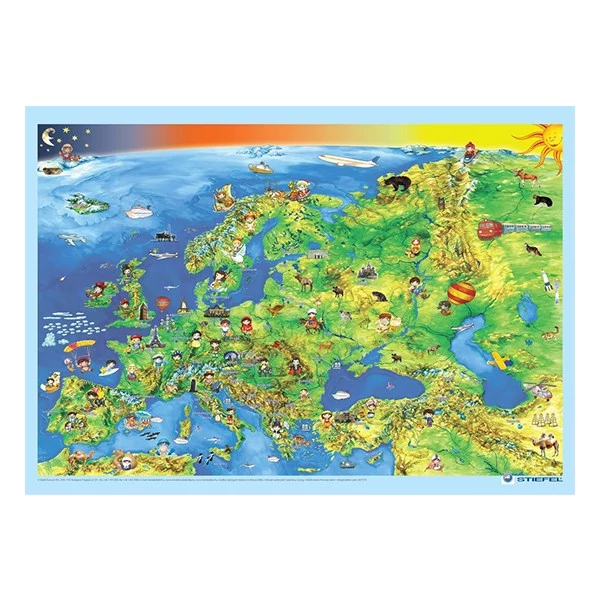 Hazánk földrajzának megismerése mellett elengedhetetlen tágabb környezetünk megismerése is. Ehhez nyújt segítséget az íróasztali alátét. A gyerektérkép bohókás piktogramjai játékosan segítik átadni az ismereteket.