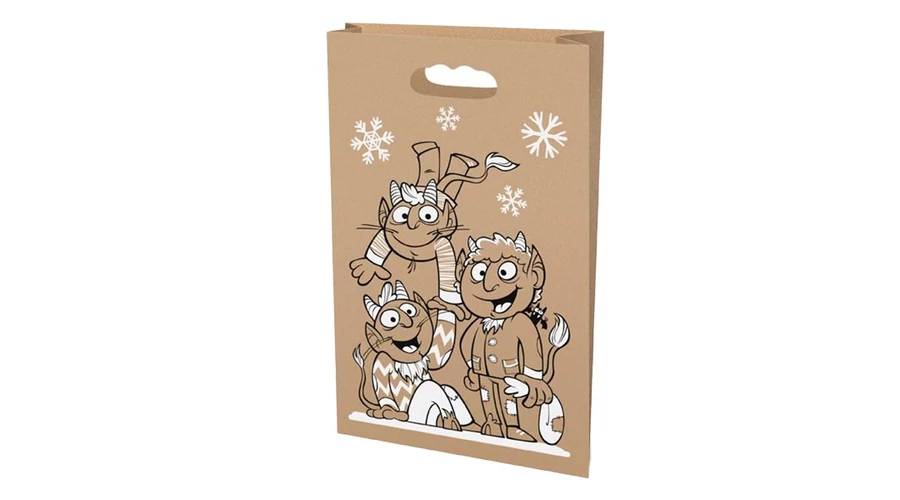Mikulás táska barna papírból. Csokoládécsomagok összeállításához ideális. Mérete: 26x41x11 cm. Csomagolása: 50 db.
