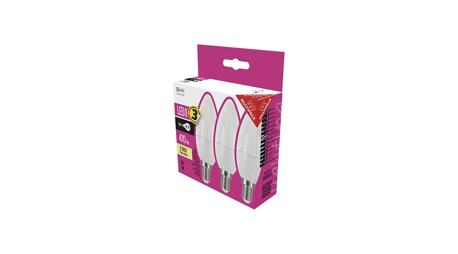 LED izzó EMOS E14 gyertya 5W meleg fény 2700K 3db/doboz
