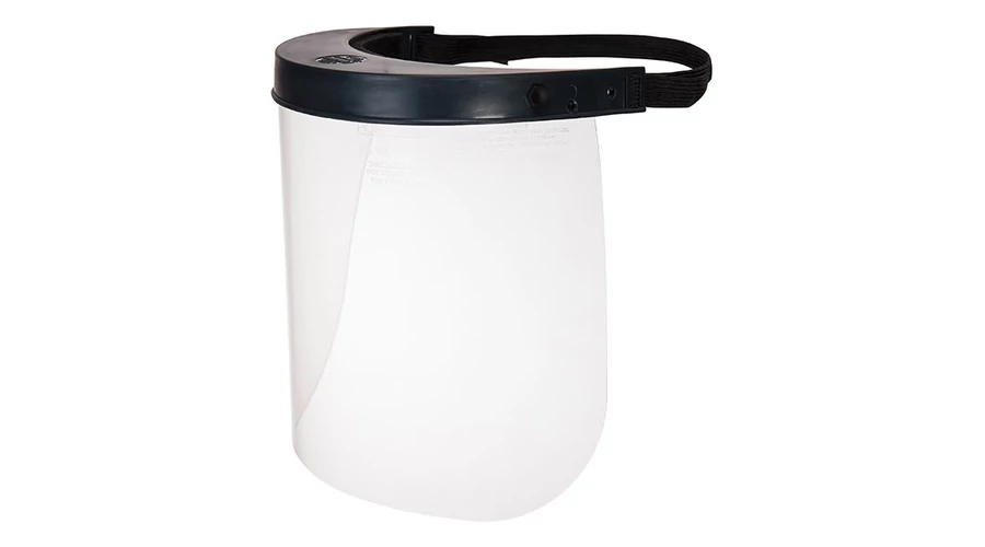 Ütésálló, víztiszta polipropilénből készülő munkavédelmi arcvédő modell.