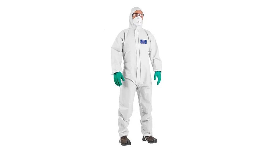 - CoverPro 5S10 fehér színű, három rétegű, kapucnis könnyű (50 g/m2) antisztatikus, SMS polipropilén overáé