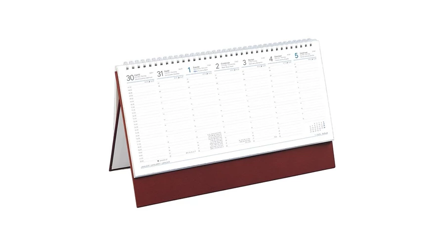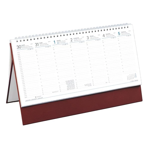 Asztali naptár kép nélküli TOPTIMER T051 álló fehér lapos bordó 2025.