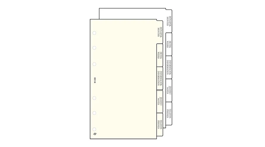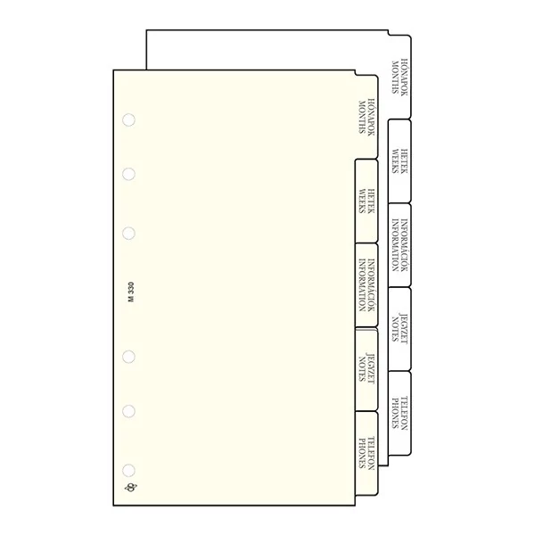 Gyűrűs kalendárium betét SATURNUS M330 elválasztólap fehér lapos