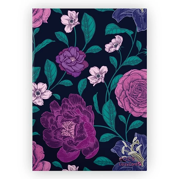 Határidőnapló LIZZY CARD Night Flowers A/5 napi szivacsos 2025.