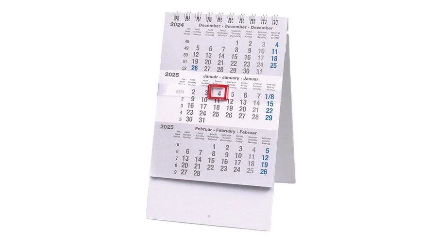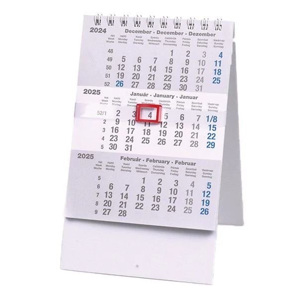 Speditőrnaptár REALSYSTEM álló asztali mini 3 havi fehér lapos 2025.