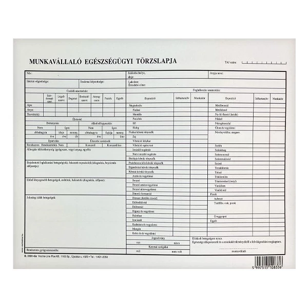 Nyomtatvány munkavállaló egészségügyi törzslapja