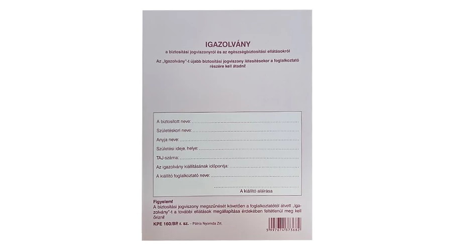 Nyomtatvány TB igazolvány PÁTRIA