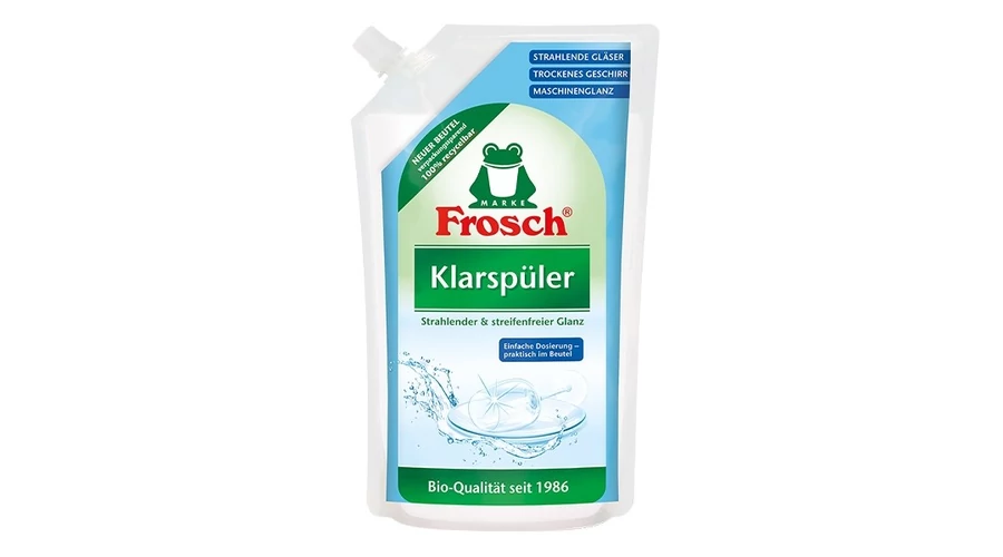 Természetes bioalkohol tartalmú termék, könnyen adagolható, visszazárható csomagolásban. Használatával az edények csík, és foltmentesek, valamint ragyogóan tiszták lesznek. Segíti a mosogatás utáni gyors száradást is. A termék tasakos csomagolása 60%-kal kisebb hulladék terhelést jelent a hagyományos műanyag flakonokhoz képest. 5-15% nemionos felületaktív anyagok, <5% anionos felületaktív anyagok. Egyéb összetevő: bioalkohol.