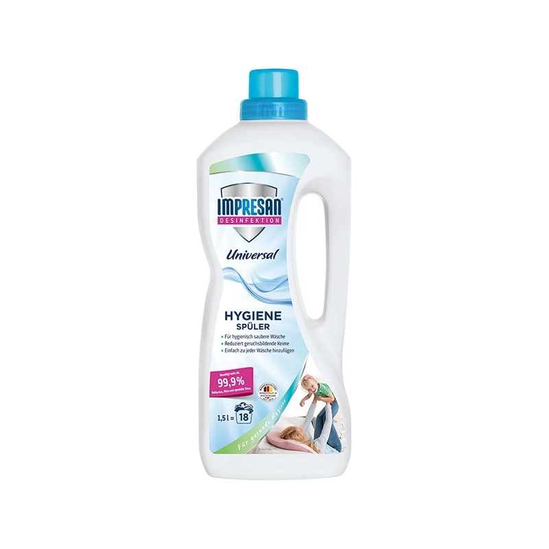 | A Heitmann fertőtlenítő mosószeradalék mosási fertőtlenítő a higiénikusan tiszta és hosszantartó friss illatú ruhákért – baba és gyerekruhákhoz is. A mosógépet is fertőtleníti. 15 mosáshoz elegendő. Hideg vízben is hatékony egészen 60°C-os mosásig. A kezelt textillák bőrbarát eredménye bőrgyógyászok által igazolt. A baktériumokat, gombákat és a vírusok 99,99%-át elpusztítja Felhasználási javaslat: 20-60°C fokos mosásig alkalmazható. Gépi mosás: tegyen az öblítő adagolóba 2 és fél kupaknyi terméket. Kézi mosás: keverjen 1,5 kupaknyit a termékből 5 liter vízhez a mosás legutolsó öblítési fázisában. Hagyja hatni legalább 30 percig. Alkalmazható bármilyen textilhez 60°C-os mosási hőmérsékletig használható kézi és gépi mosáshoz egyaránt 15 mosáshoz elegendő Különösen ajánlott a csecsemő és baba ruhákhoz Amik közvetlen érintkeznek a bőrfelülettel vagy tartósan nedvesek lehetnek, azokhoz a textilekhez különösen ajánlott | |