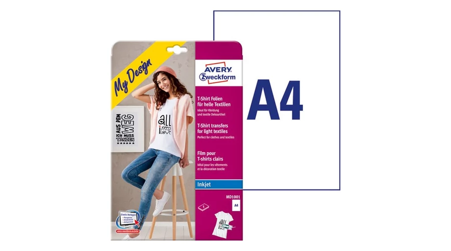 Textilre vasalható fólia AVERY MD1001 világos pólóra vasalható tintasugaras nyomtatóhoz 5 ív/csomag