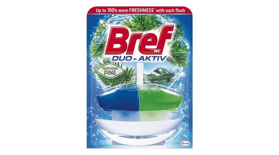 A WC tisztító kék tartályban levő összetevő meggátolja a vízkő és kosz lerakódást. A másik, jobb oldali tartály felelős a kellemes illatért és frissességért az öblítések során. A Bref Duo-Aktív hatása azonnal látható a vízben képződő tisztító hab formájában. A Bref Duo-Aktív akár 250 lehúzásra is elég.
