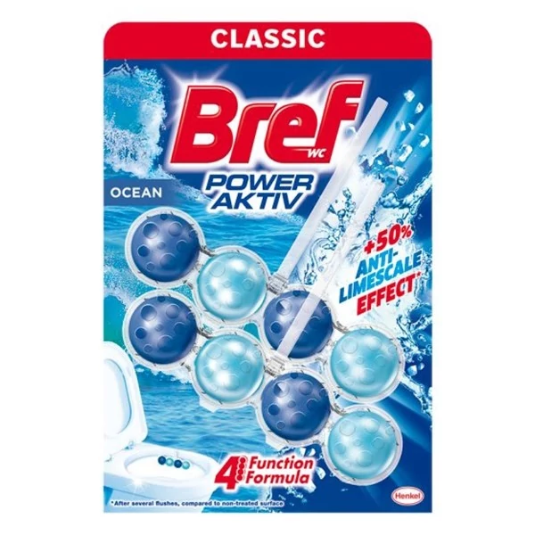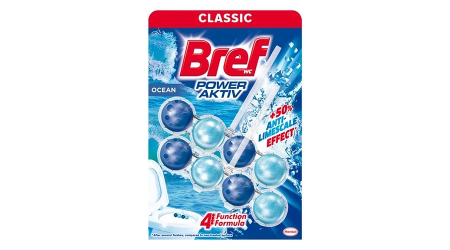 Az egyedi Bref Power Aktiv négyfunkciós technológiával meggátolja a vízkőlerakódást, tisztítóhabot képez, higiénikusan tisztít és extra frissességet biztosít WC-jében.