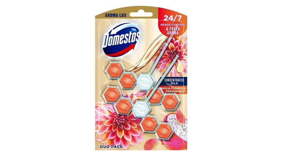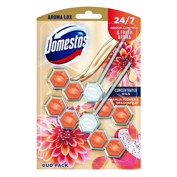 Toalett öblítő DOMESTOS Aroma Lux Dahlia Flower & Dragon Fruit 2x55g