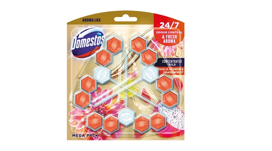 Toalett öblítő DOMESTOS Aroma Lux Dahlia Flower & Dragon Fruit 3x55g