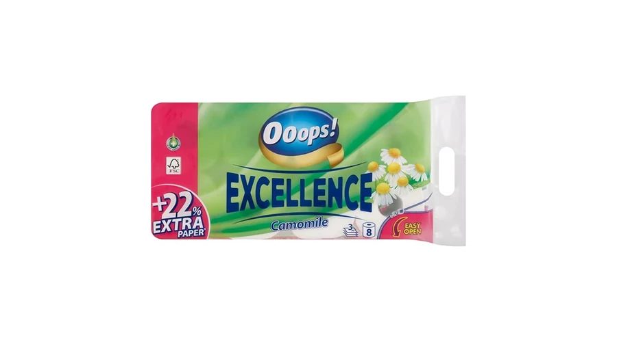Toalettpapír OOOPS! Excellence 3 rétegű 8 tekercses Kamilla