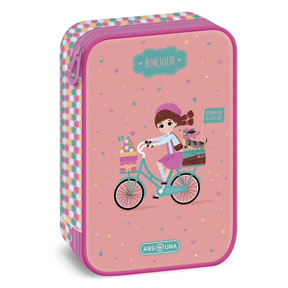 Többszintes, töltetlen, cipzáras tolltartó. Belül textillel bevont merev lapokkal, gumis kialakítással 30 ceruza számára az írószerek tárolásához és egy cipzáras belső zsebbel.