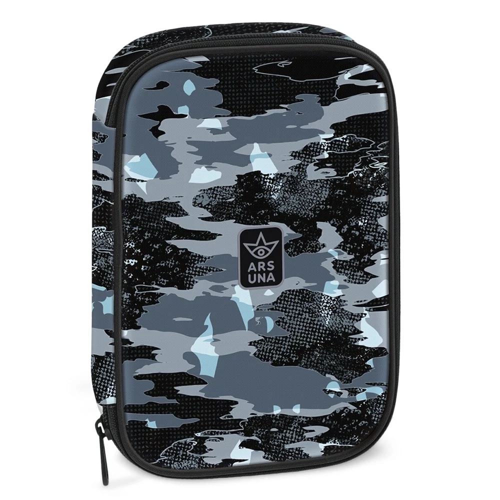 Többszintes, töltetlen, cipzáras tolltartó. Belül textillel bevont merev lapokkal, gumis kialakítással 30 ceruza számára az írószerek tárolásához és egy cipzáras belső zsebbel.