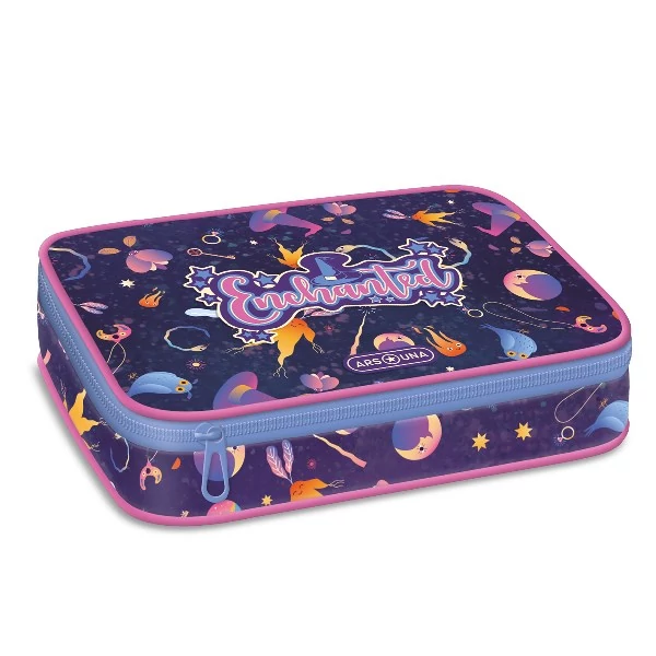 Többszintes, töltetlen, cipzáras tolltartó. Belül textillel bevont merev lapokkal, gumis kialakítással 30 ceruza számára az írószerek tárolásához és egy cipzáras belső zsebbel.