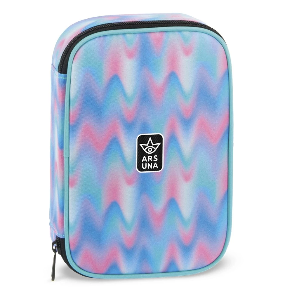 Többszintes, töltetlen, cipzáras tolltartó. Belül textillel bevont merev lapokkal, gumis kialakítással 30 ceruza számára az írószerek tárolásához és egy cipzáras belső zsebbel.