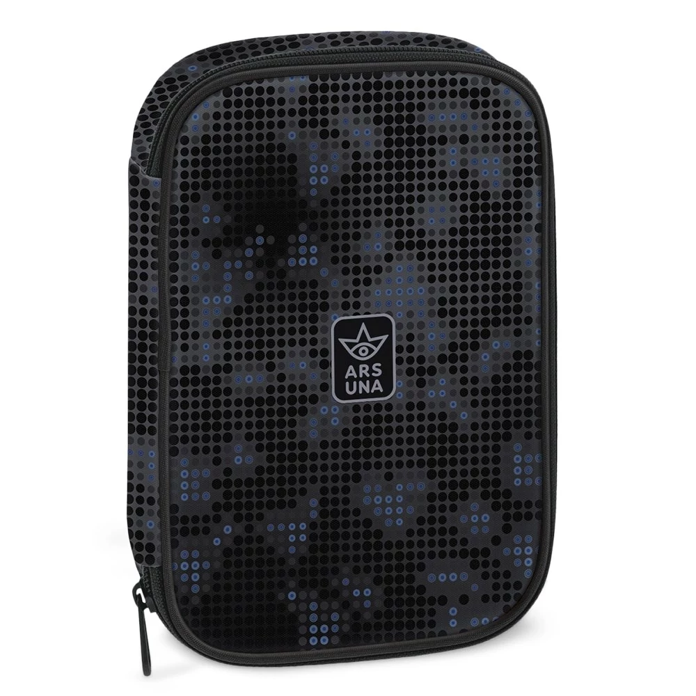 Többszintes, töltetlen, cipzáras tolltartó. Belül textillel bevont merev lapokkal, gumis kialakítással 30 ceruza számára az írószerek tárolásához és egy cipzáras belső zsebbel.