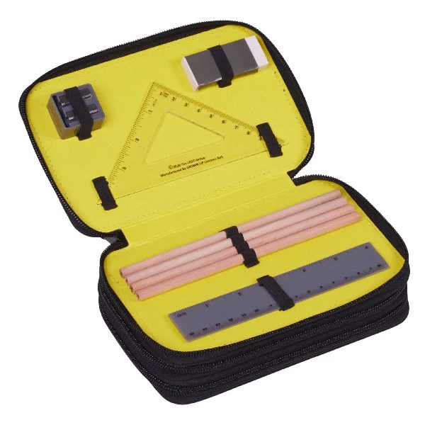 Ez a tolltartó minden szükséges eszközt tartalmaz, ami az iskolába szükséges lehet. A tolltartó CE tanúsítvánnyal rendelkezik; 2 ceruza, 10 színes ceruza, 4 vastag színes ceruza, radír, ceruzahegyező, vonalzó és háromszög is megtalálható benne. A tolltartó kitölthető órarenddel és belső névtáblával rendelkezik, amely megkönnyíti az azonosítást. Tartós PVC-mentes anyagból készült.