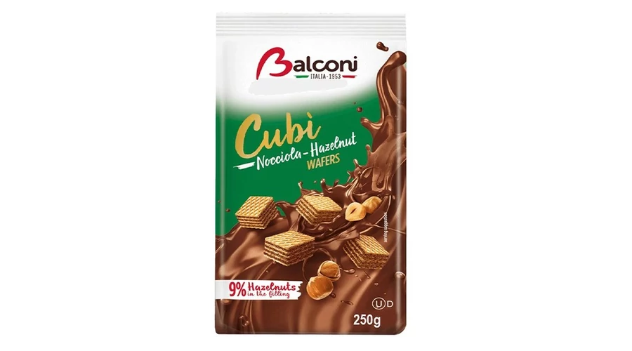 Töltött ostya BALCONI cubi wafers mogyorós 250 g