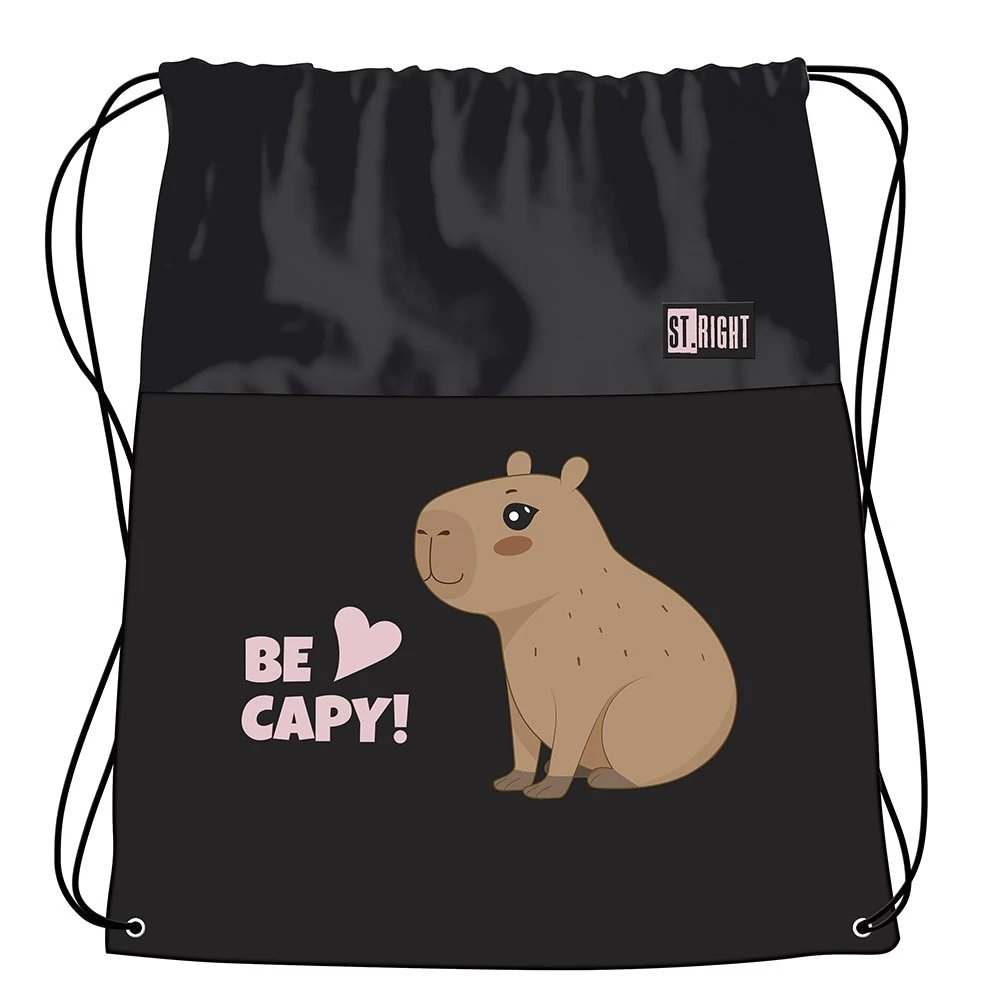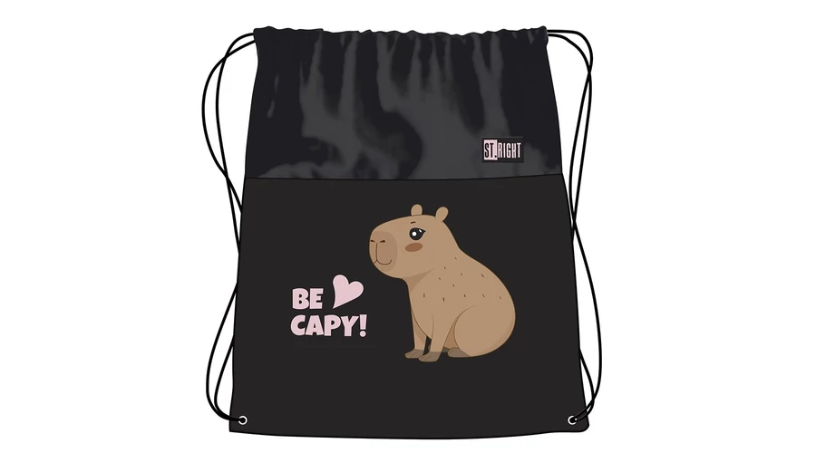 Tornazsák egy oldalon nyomott mintával. Két oldalsó zsinórral könnyen összehúzható és zárható. Mérete 45 x 32 x 0,5 cm.