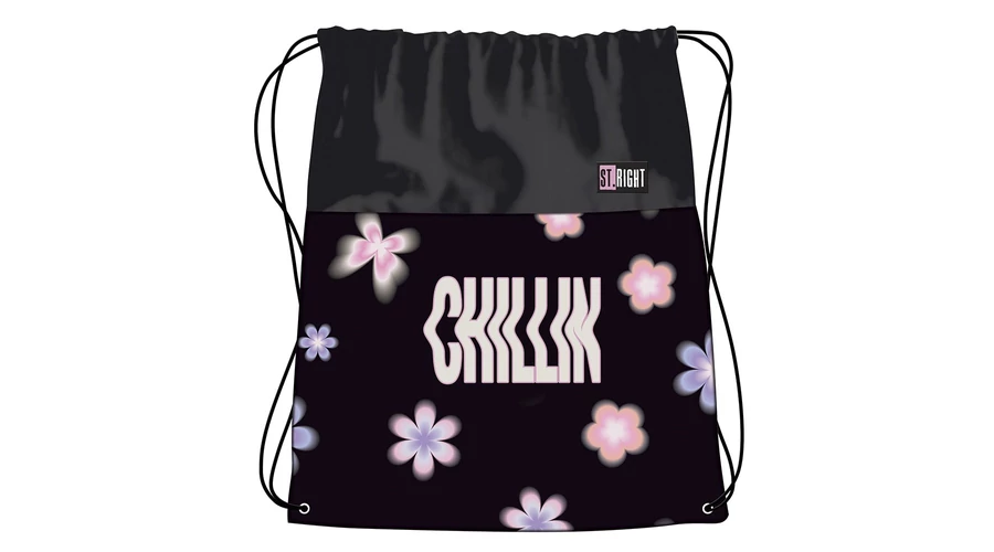 Tornazsák egy oldalon nyomott mintával. Két oldalsó zsinórral könnyen összehúzható és zárható. Mérete 45 x 32 x 0,5 cm.