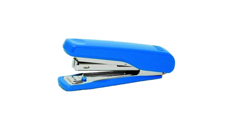 Krómacél testű, színes műanyag borítású tűzőgép, dupla nagyságú kapocstárral, beépített kapocskiszedővel és könnyen kezelhető töltési mechanikával. A kapocstár oldalán kialakított nyíláson látható a kapocs mennyiség. Két lépéses kapocs utántöltés.