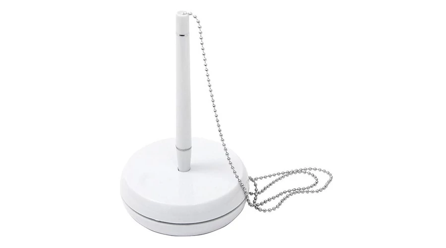 Asztalra rögzíthető ügyféltoll, lánccal. Logózható! Mérete:8,5x2,5 cm
