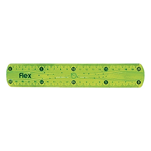 Törhetetlen rugalmas műanyagból készült 20 cm hosszú, színes, hajlékony vonalzó.