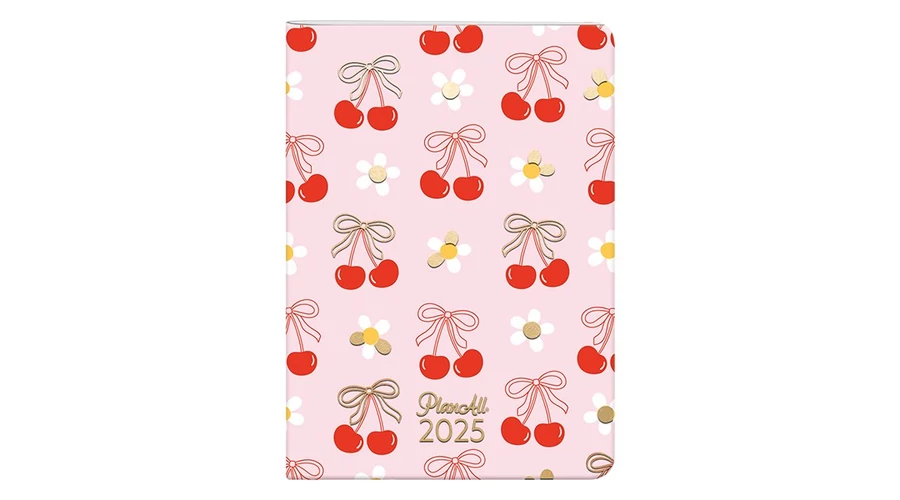 Zsebnaptár PLANALL Cherry Bow B/6 heti álló fehér lapos aranyozott 2025.