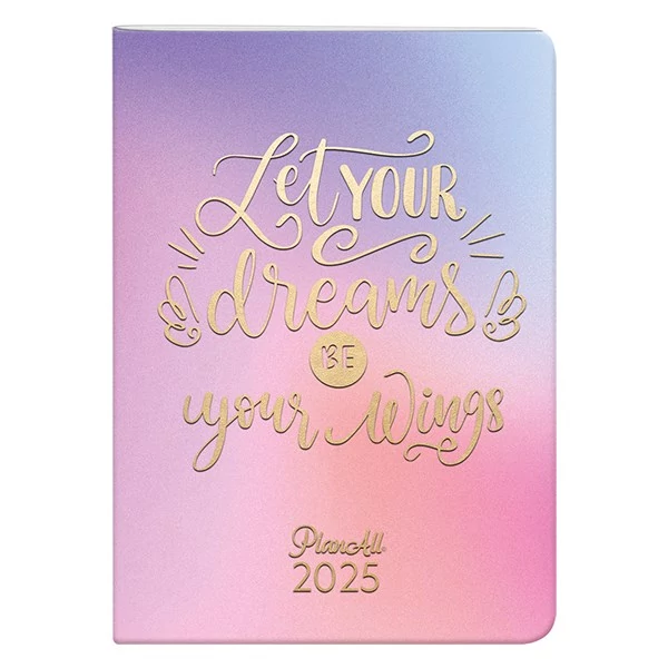 Zsebnaptár PLANALL Wings B/6 heti álló fehér lapos aranyozott 2025.