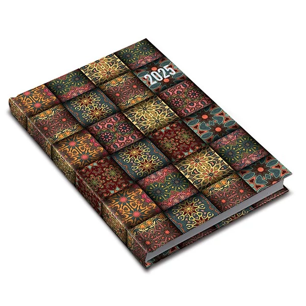 Színes papírborító soft-touch fóliával, kétnapos beosztással és 240 oldal jegyzetlappal.