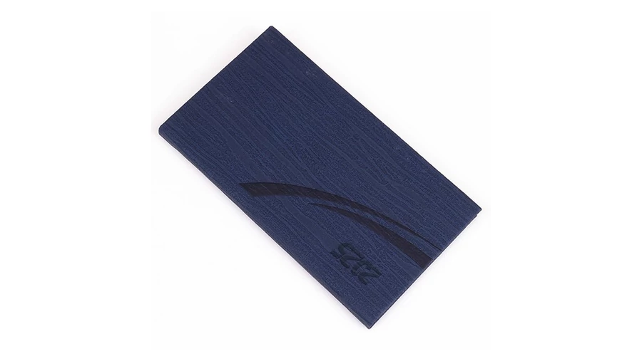 Fashion típusú, merészen struktúrált felületű, magas minőségű műbőr borítás, vaknyomással emblémázható.