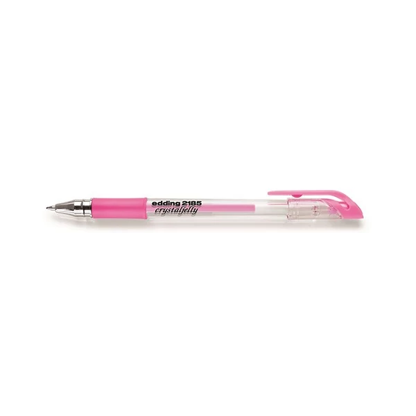 Átlátszó tolltestű, kényelmes gumírozott fogórésszel ellátott zselés toll. A kiegészítők (gumis fogórész, záródugó) színével megegyező írásszínek.