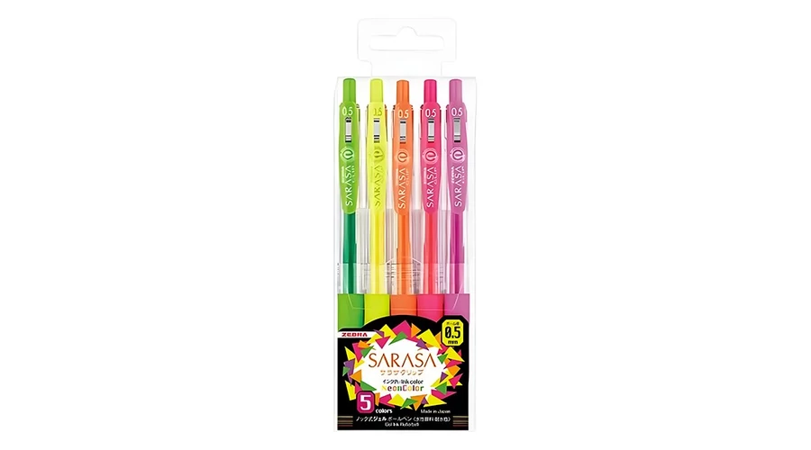 Zseléstoll készlet ZEBRA Sarasa Clip neon nyomógombos 0,5 mm 5 db/készlet