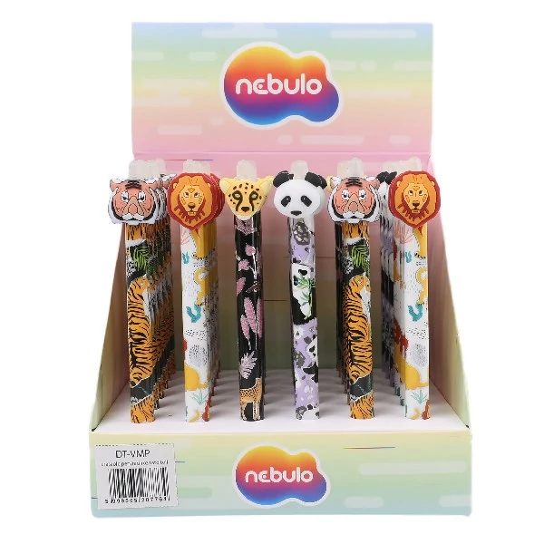 Zseléstoll NEBULO nyomógombos radírozható 0,5mm Vadmacskák és Panda