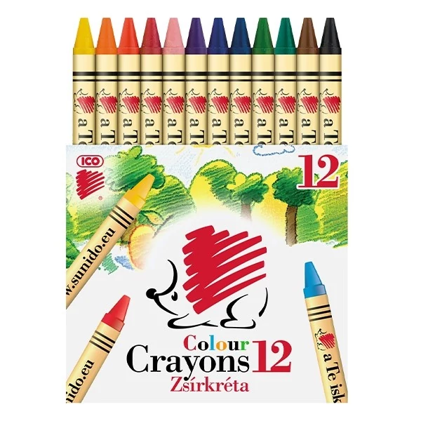 Zsírkréta ICO Süni kerek hegyezett 12 színű